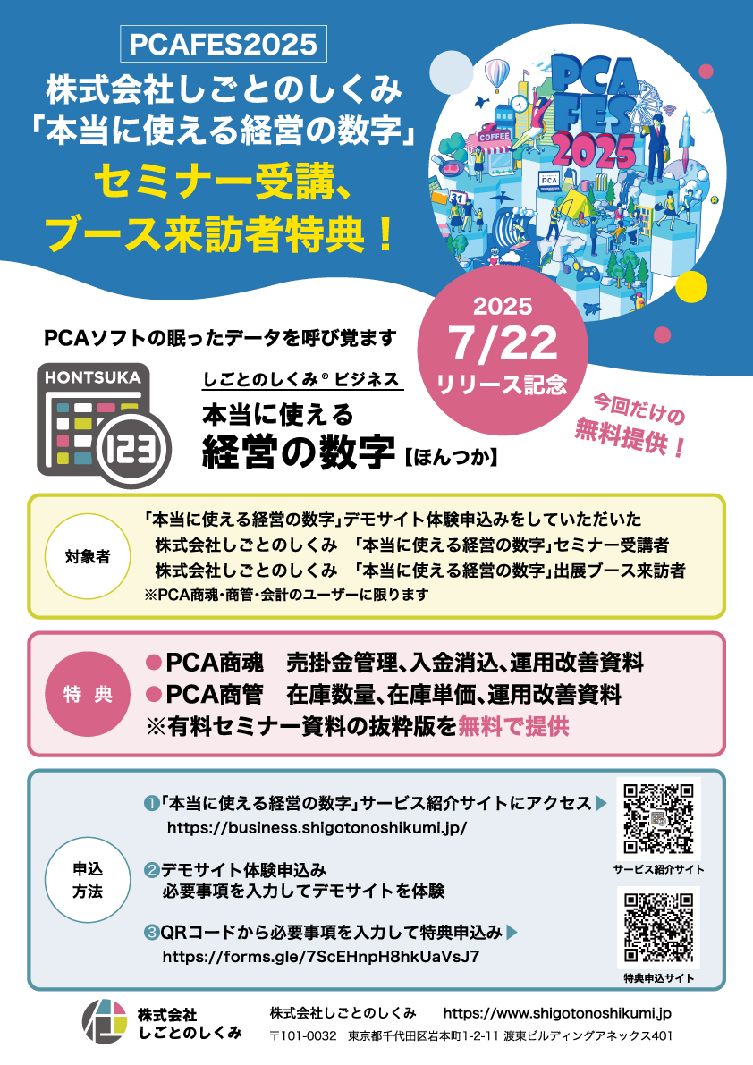 7/25のPCA社の展示会「PCAFES2025東京」で講演とブース出展、
