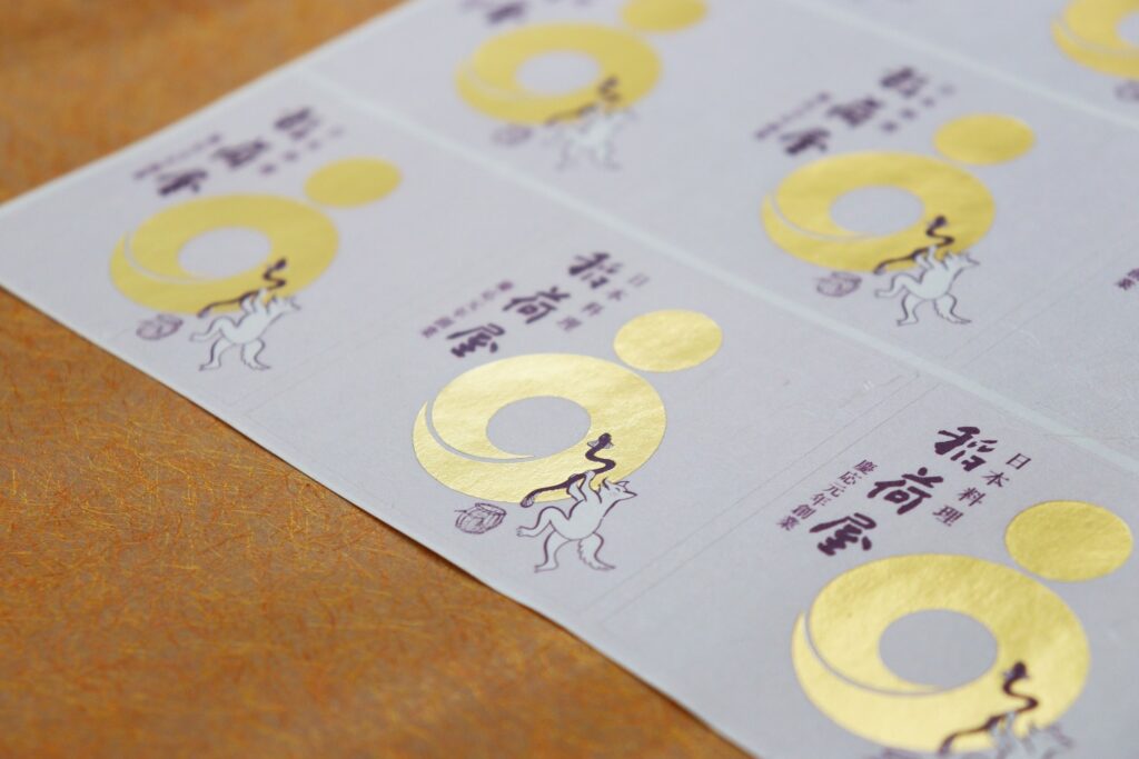 船橋の老舗『日本料理 稲荷屋』様のペーパーバッグ用ラベルシールをデザインさせていただきました。