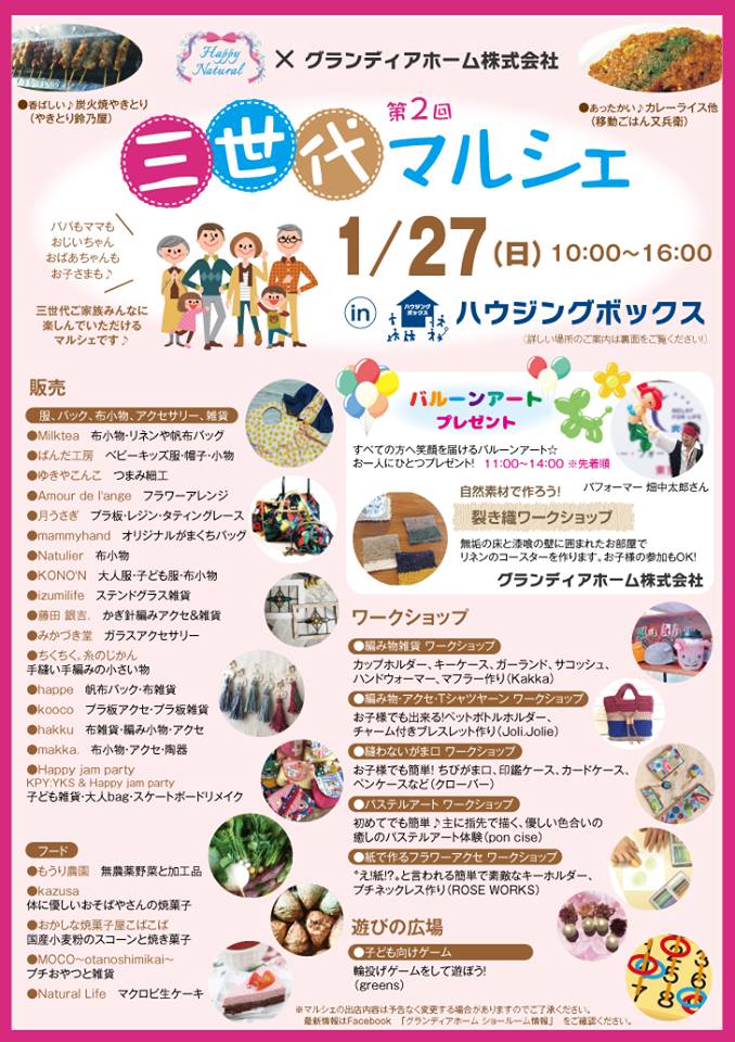 グランディアホーム株式会社さんで開催される、おじいちゃん・おばあちゃんからお子様まで楽しめる、『三世代マルシェ』