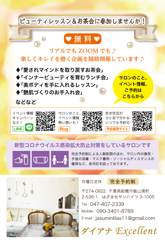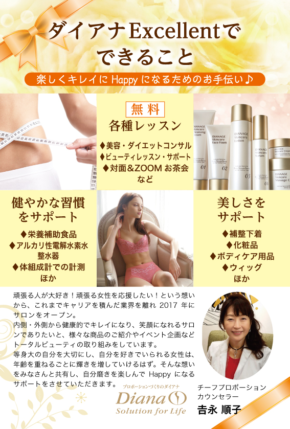 船橋市飯山満にある「プロポーションづくりのダイアナ」のサロン「ダイアナExcellent」様のハガキを作らせていただきました!