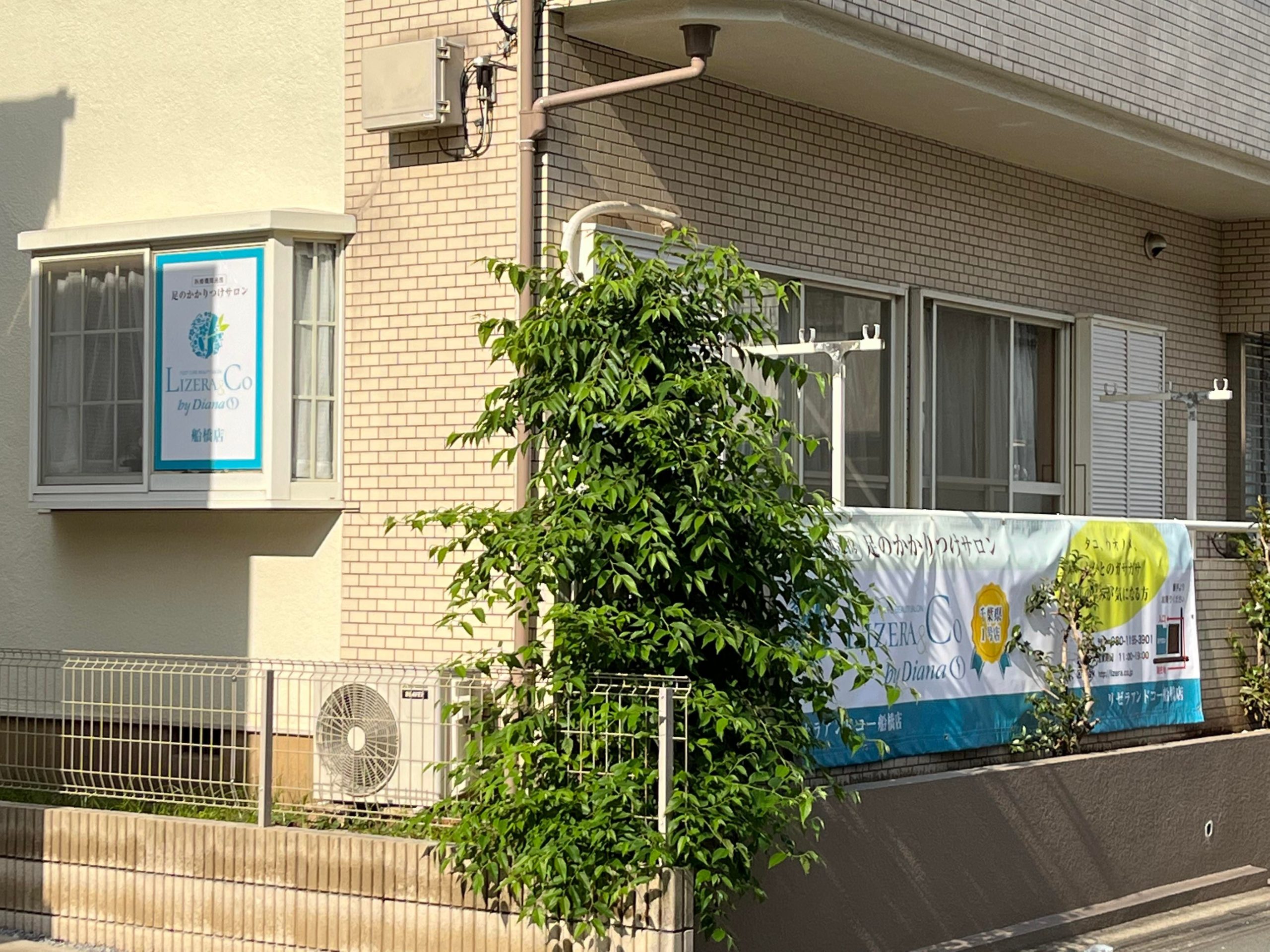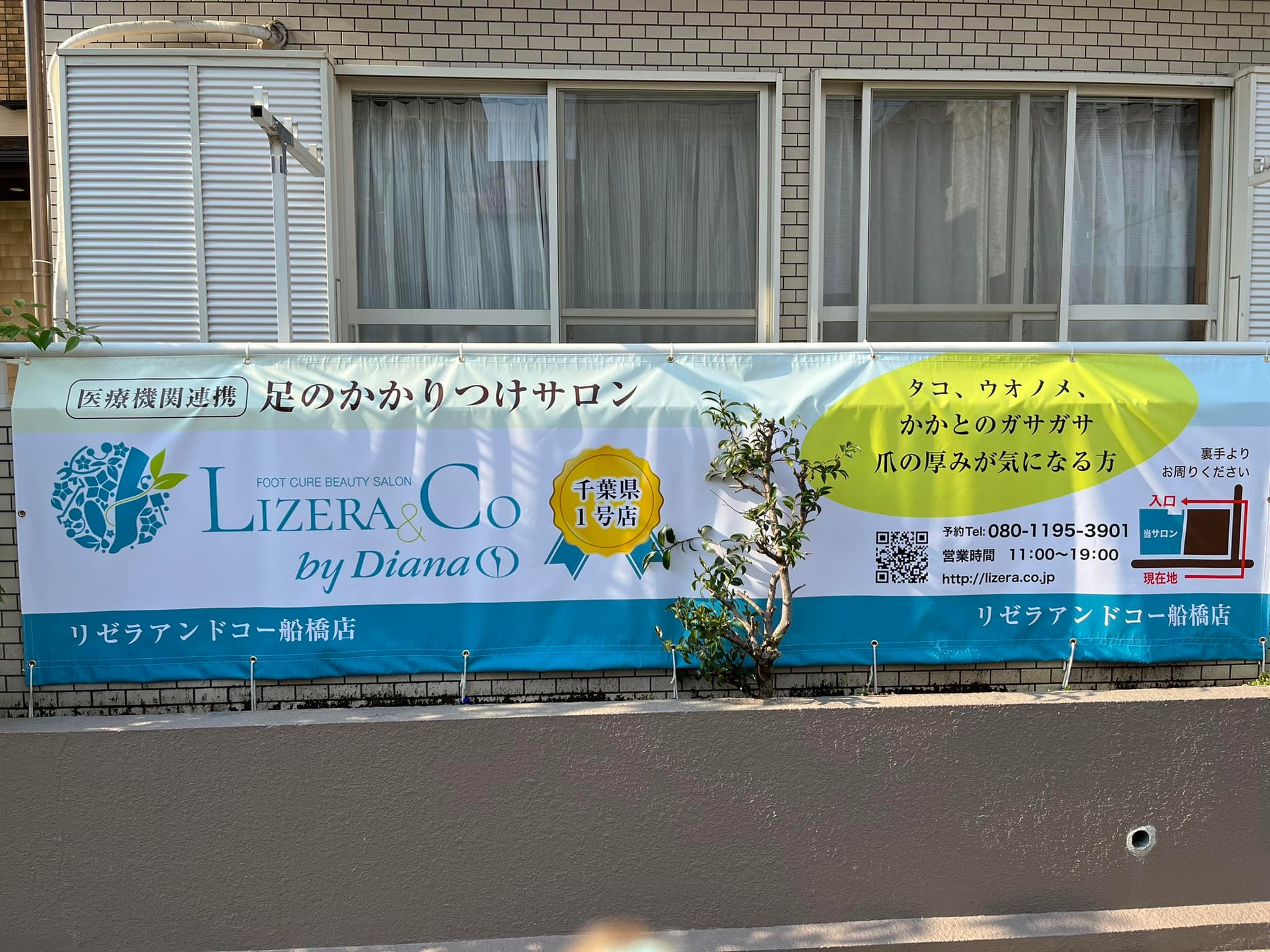 『リゼラアンドコー船橋店』様のサロン周りの窓シート・横断幕を作成させていただきました。