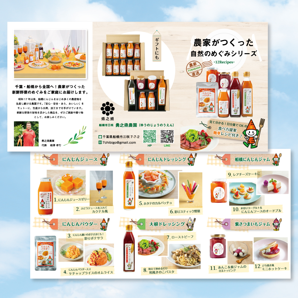 畑の新鮮なお野菜を使った加工品の数々を、ご案内できるようなリーフレットを作成させていただきました✨