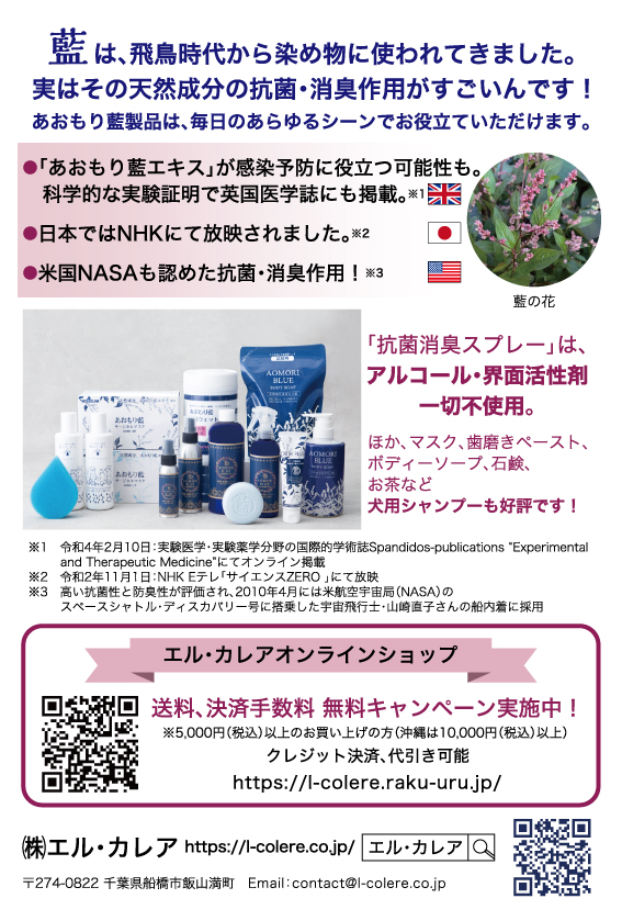 今回ハガキ作成をさせていただいたのは、無農薬の「AOMORI藍」エキスを使った生活必需品のラインナップ。