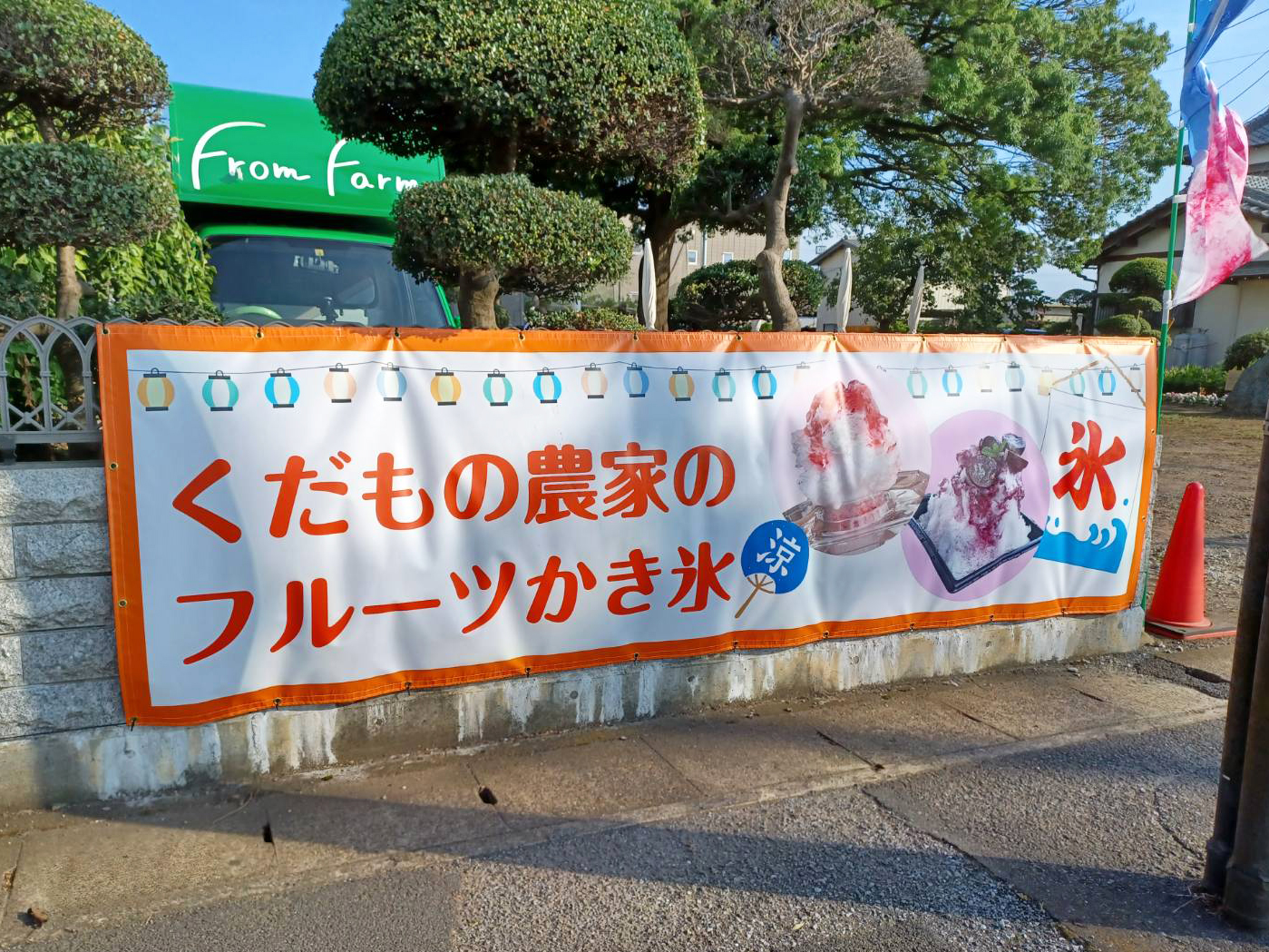 冬場のフルーツサンドの横断幕に替わって、かき氷の横断幕を作成させていただきました。