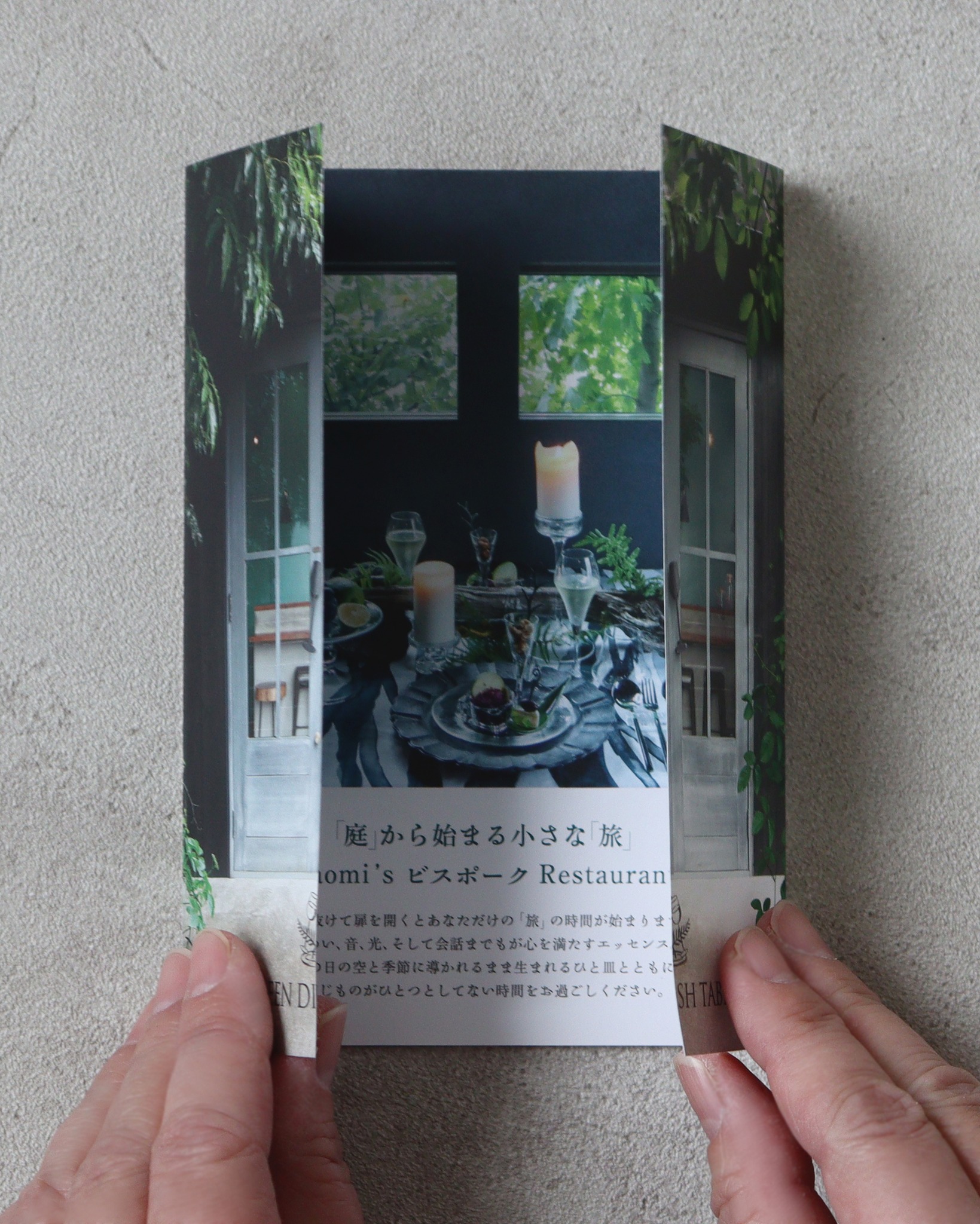 空間、季節、食器、そして毎回違うテーブルコーディネートとメニューに、ワクワクしたり癒されたり、まさに「旅」のような体験ができちゃいます。