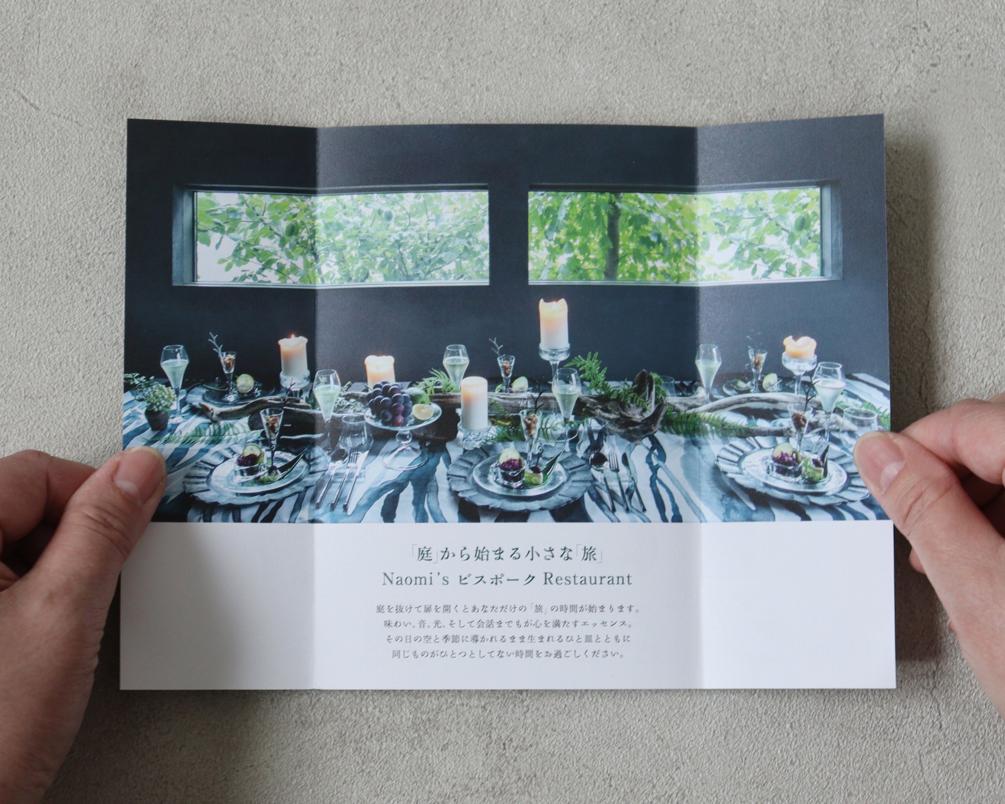 「郊外ラグジュアリー」に沿ったものにしたいので、サイズや紙質にもこだわり、何度も楽しく打ち合わせをさせていただきました。