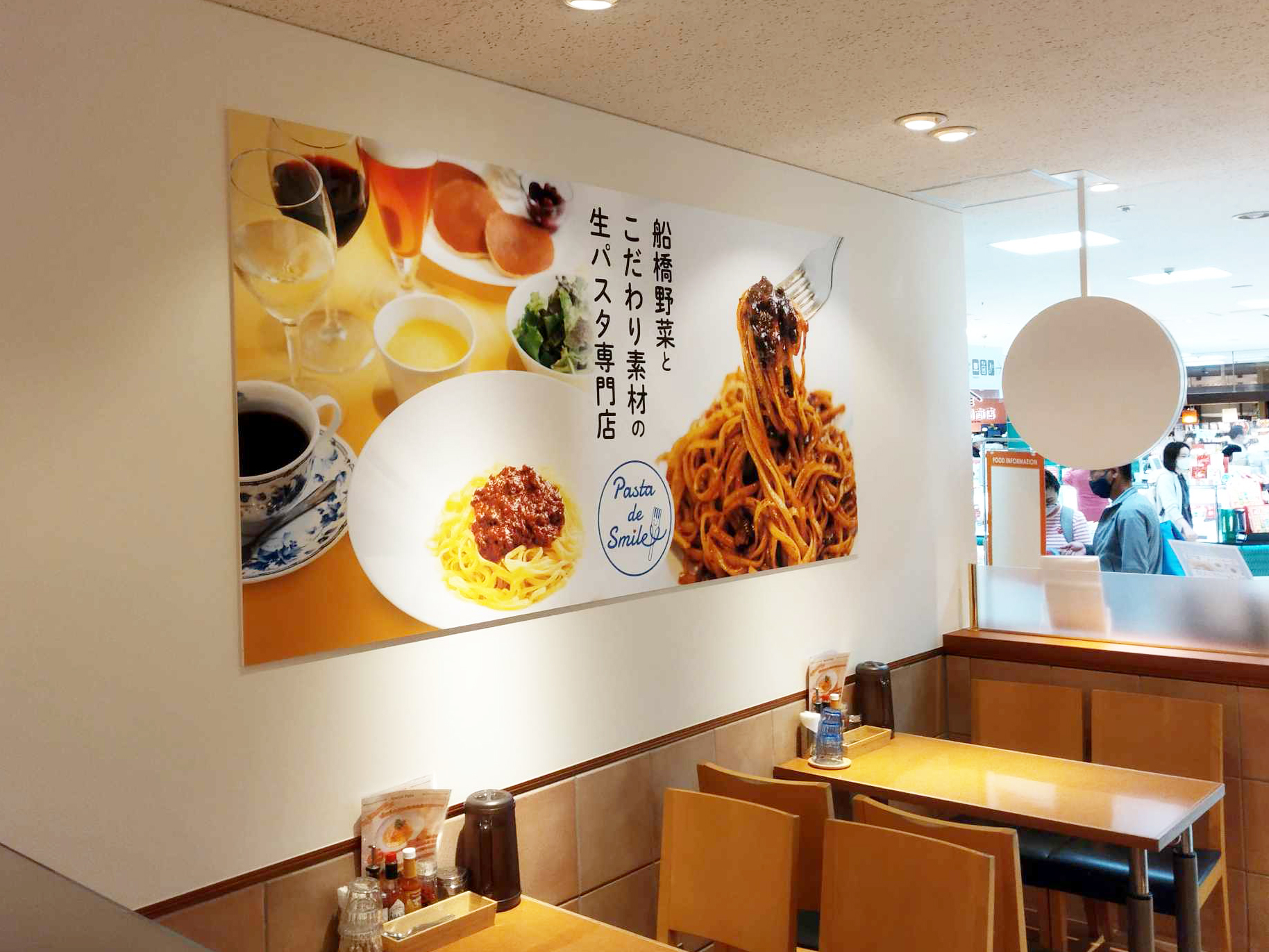 東武船橋店『Pasta de Smile』様の壁面パネルを作成させていただきました。