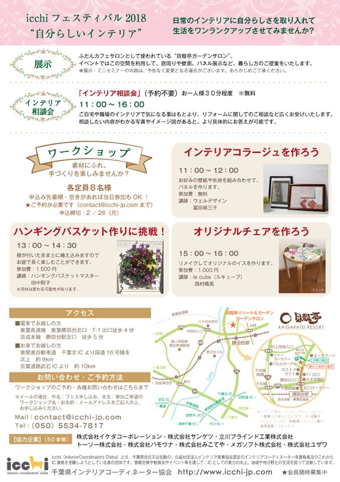 『icchi(千葉県インテリアコーディネーター協会)』様のイベントのチラシを作らせていただきました。